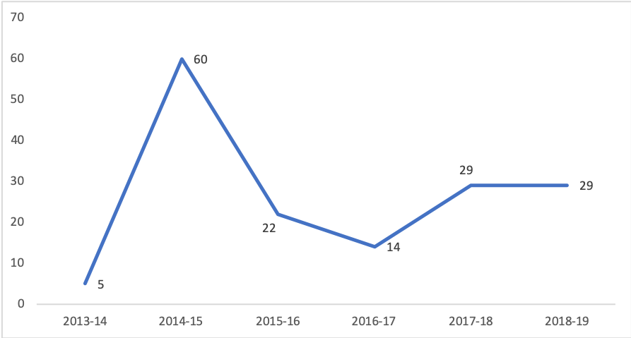 - The number of online/hybrid sections at CSUSB grew from 566 in 2014-15 to 796 in 2018-19. Similarly, the enrollment in online/hybrid sections also grew over the same period;