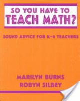 This book is copyrighted. However, it is available through ProQuest e-library. If your institution subscribes, you may have unlimited access for downloads. Burns, M., & Silbey, R. (2000). So You Have to Teach Math?. Sausalito, US: Math Solutions Publications.