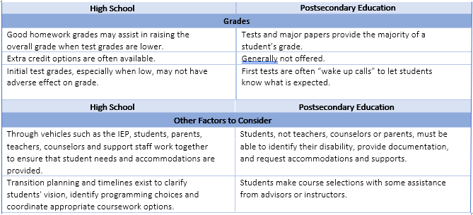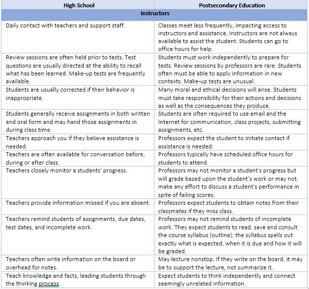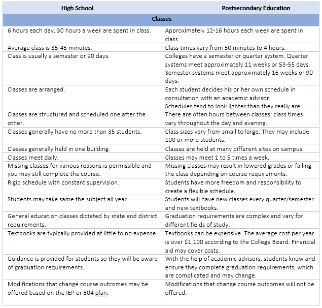 "Difference Between High School and College", from GEAR UP Washington State Activity Guide Preparing Students for the Transition to College.