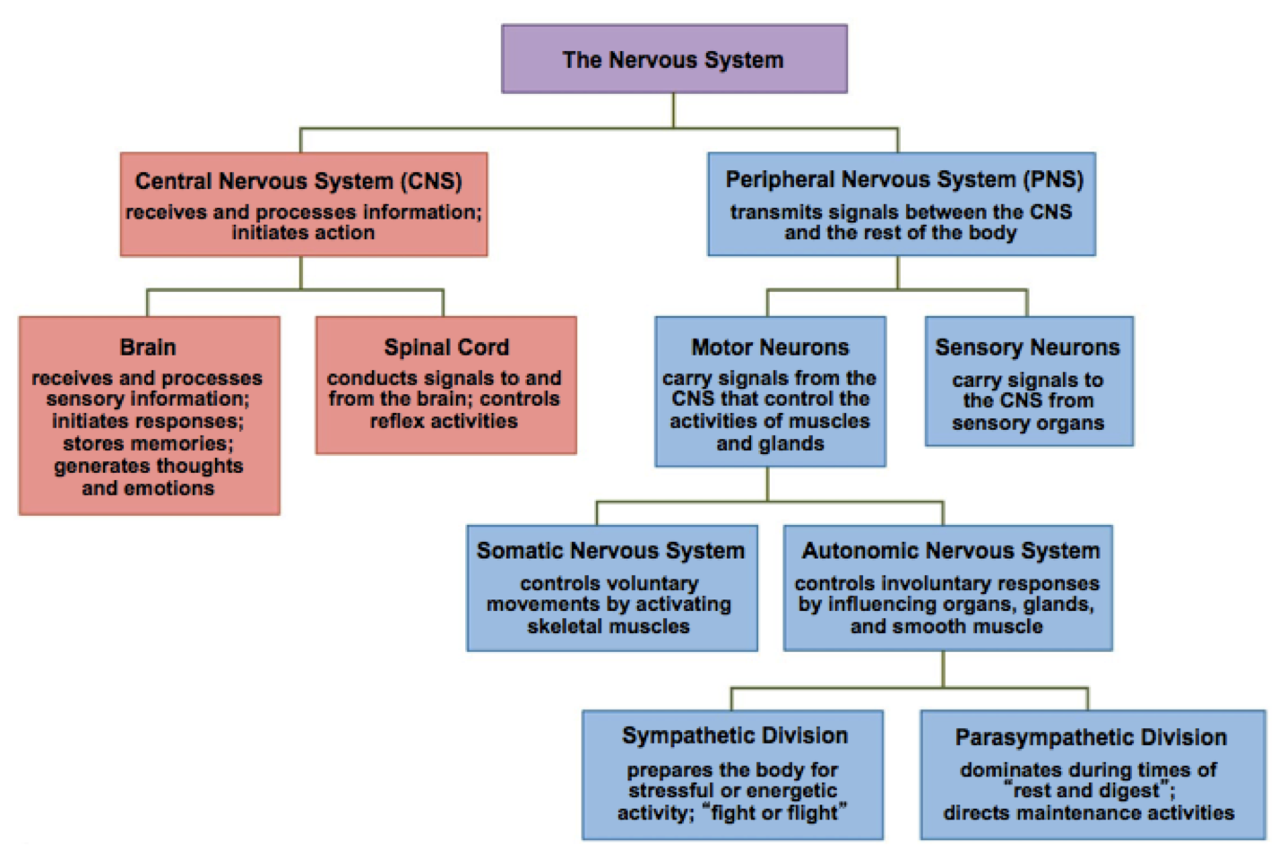 Vertebrate systems are generally divided into an information transmission portion (Peripheral Nervous System or PNS) and a central integration and decision portion (Central Nervous System or CNS).