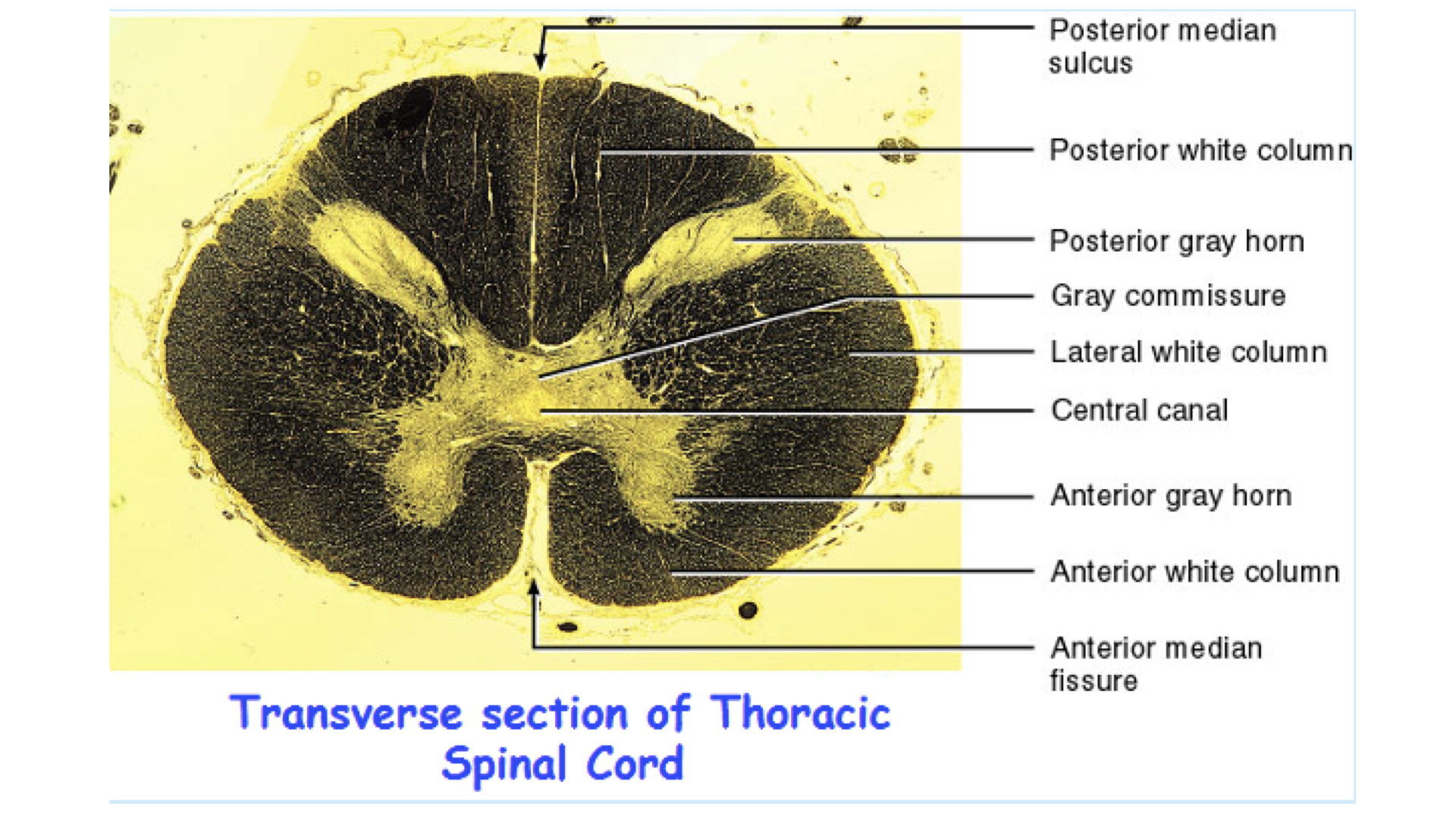 4.   Composed of gray & white matter – histologically H shaped grey matter surrounded by white matter