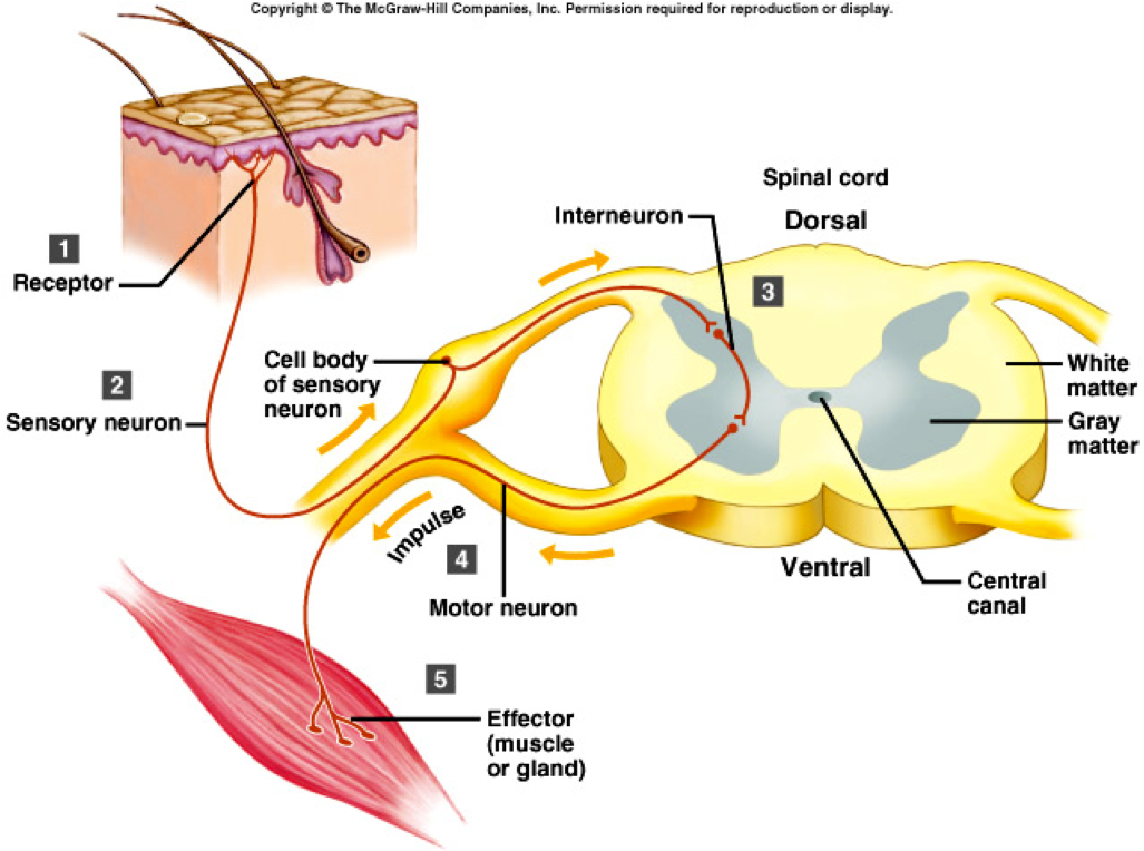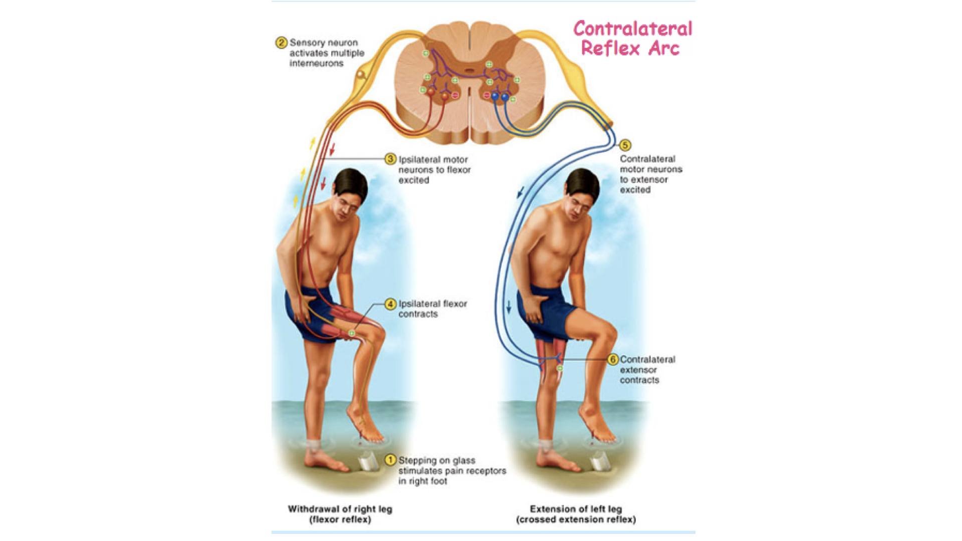 2.  Polysynaptic - from sensory to interneuron to motor neuron--slower and more complicated response