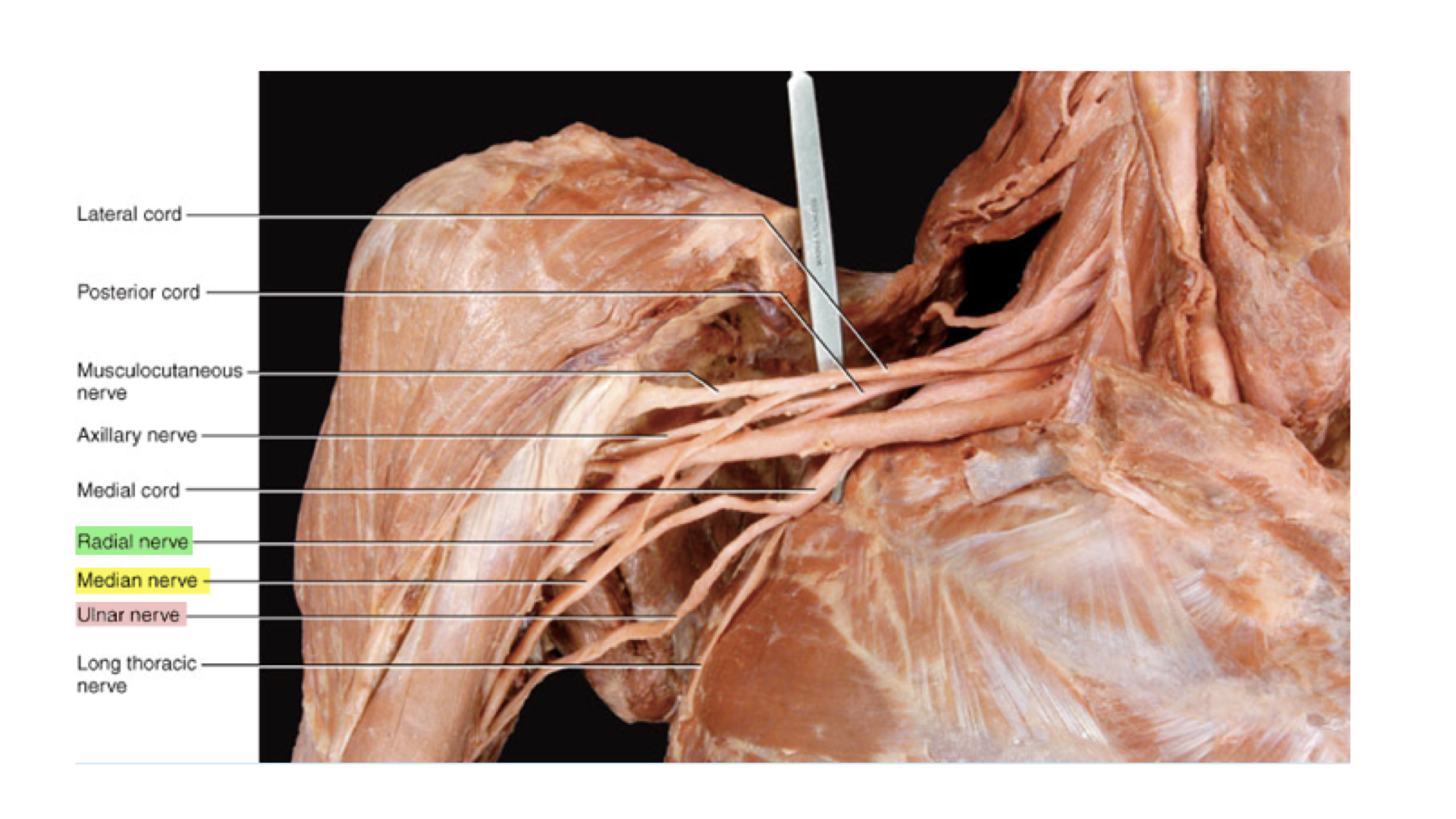 Brachial plexus with Radial, Ulnar, and Median Nerves Highlighted