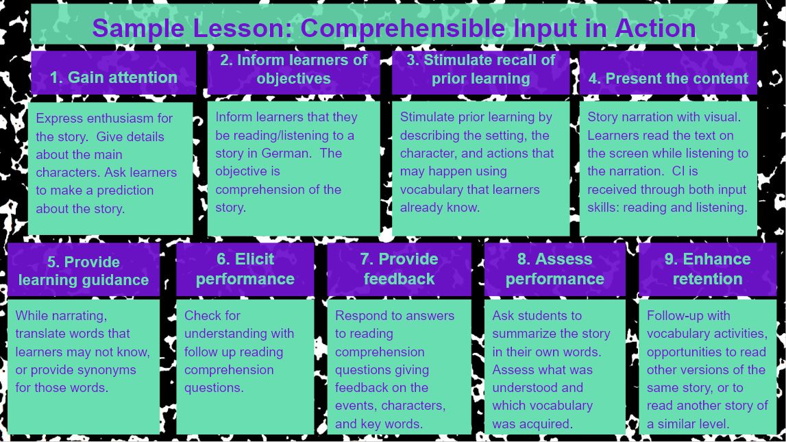Read and Discuss - In an online environment, a story listening module would provide comprehensible input while learners could use a discussion board or video app, such as Flipgrid, to communicate about the story.