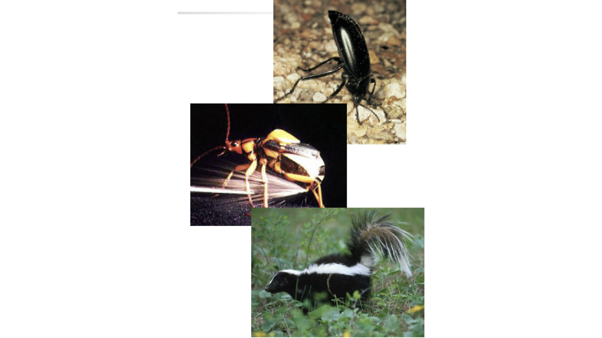 Moment-of-truth defenses allow prey animals to defend themselves by startling or intimidating the predator with display behavior or secretions of irritating chemical repellants or toxins.