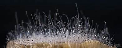 Image below is Rhizopus reproductive structures on bread - bread mold.