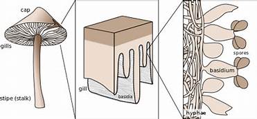 Basidiomyctes are also called club fungi. These are the familiar mushroom shape that we are used to seeing. The mushroom is only the reproductive structure and can be picked without harming the growing part of the fungus in soil or wood - much like you can pick peaches off of the tree without harming the growing plant. When forming spores, a club shaped structure forms inside the mushroom and produces the spores. This club shaped structure is unique to this group and is called a basidium. This group contains the familiar mushroom as well as a number of other morphologies. Example: Agaricus brunnescens, Coprinus spp.