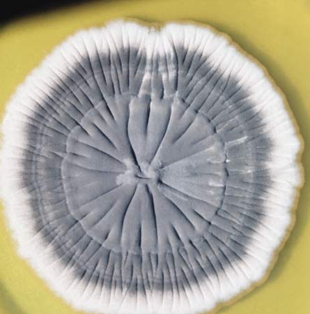 When these conidia are formed in large numbers it gives a fuzzy appearance. Most of these fungi are benign but one group called the dermatophytes causes infections of the skin. These fungi use the protein keratin as a nutrient source and can be found on many parts of the body. Commonly referred to as ring worm, they are fungal infections.