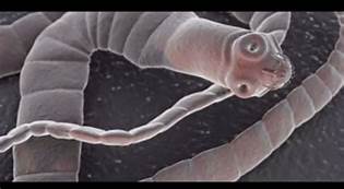 2. Cestoda or tapeworms - You have probably already heard of them. They are ribbon-like and are parasites of a large number of animals, including humans. The head attaches inside the host and segments with eggs are shed in feces. The worms are most often found in the intestinal tract. While tapeworms may also be found in other parts of the body, those are reproductive dead ends unless you are eaten by another animal. Many vertebrates are hosts to tapeworms.