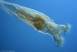 Rotifers are aquatic organisms that also have a tube-within-a-tube digestive tract and a pseudocoelom. Their characteristic feature are circles of cilia around the mouth area that give the appearance of rotation.