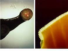 Class Petromyzontiformes - Lampreys are also jawless but do have cartilaginous vertebrae and a cranium. They feed by attaching their sucker-like mouth to a fish and using their horny teething rasp-like tongue to scrape away flesh. They became a major pest in the great lakes after the Welland Canal provided them an entry around Niagra Falls.