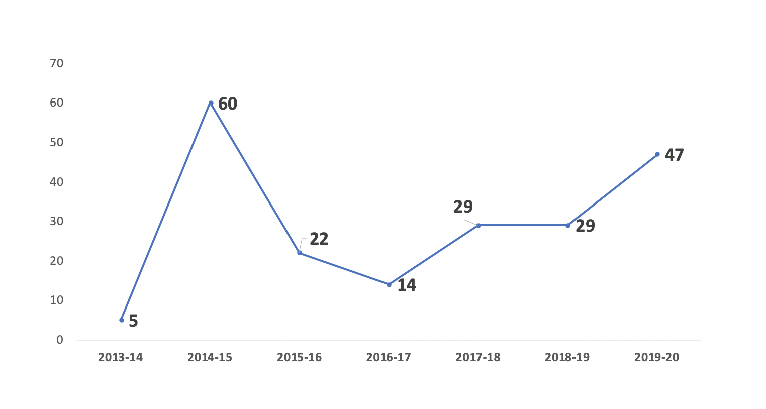Prior to COVID-19 campus closure, in 2019-20, 47 faculty attended QM or QLT training programs offered by the Office of the Chancellor, a 38% increase from last year.