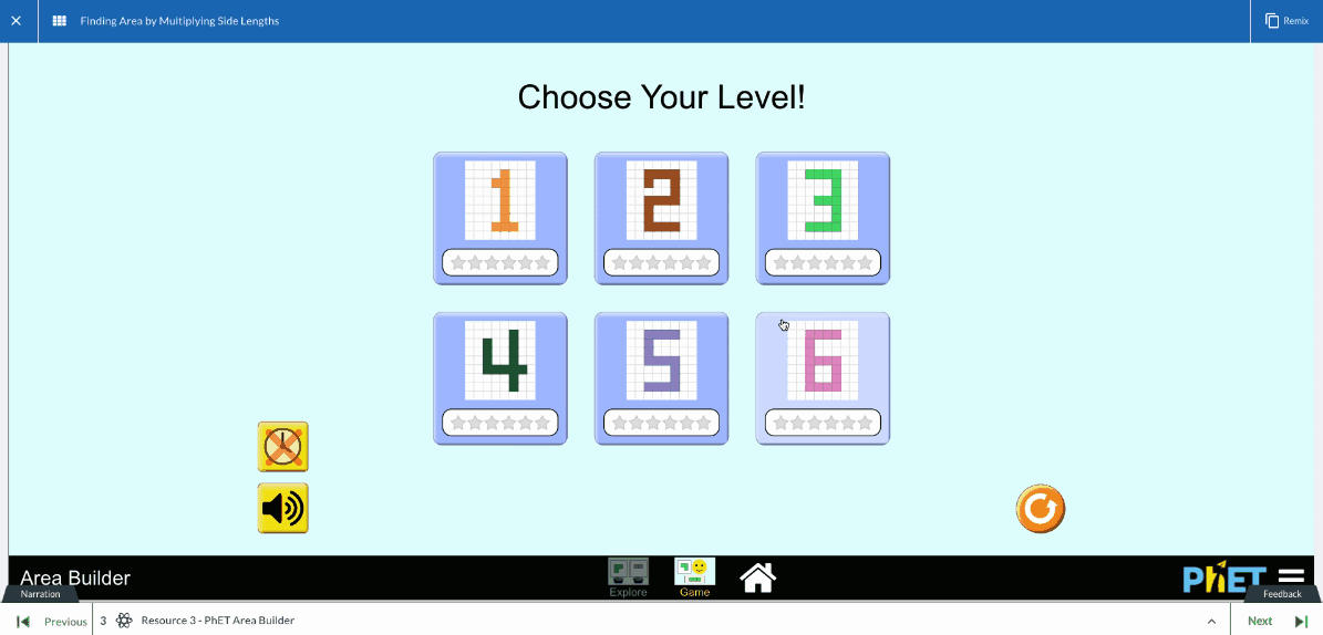 Math Navigator contains content from elementary to high school. In this example, elementary students use an interactive area builder.