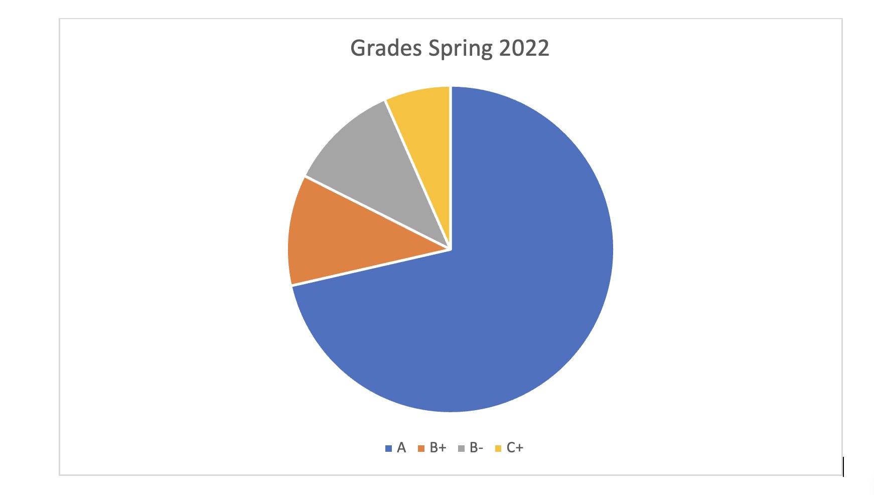Grades, Spring 2022 (18 students). In this case, there were only 4 different grades in the group: A, B-, B+ and C+: