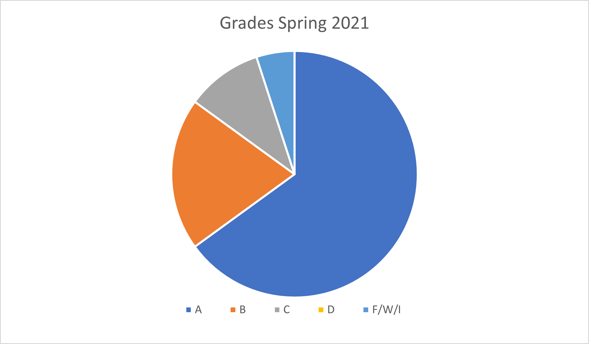Grades, Spring 2021 (20 students). Letter refer to grades as explained before: