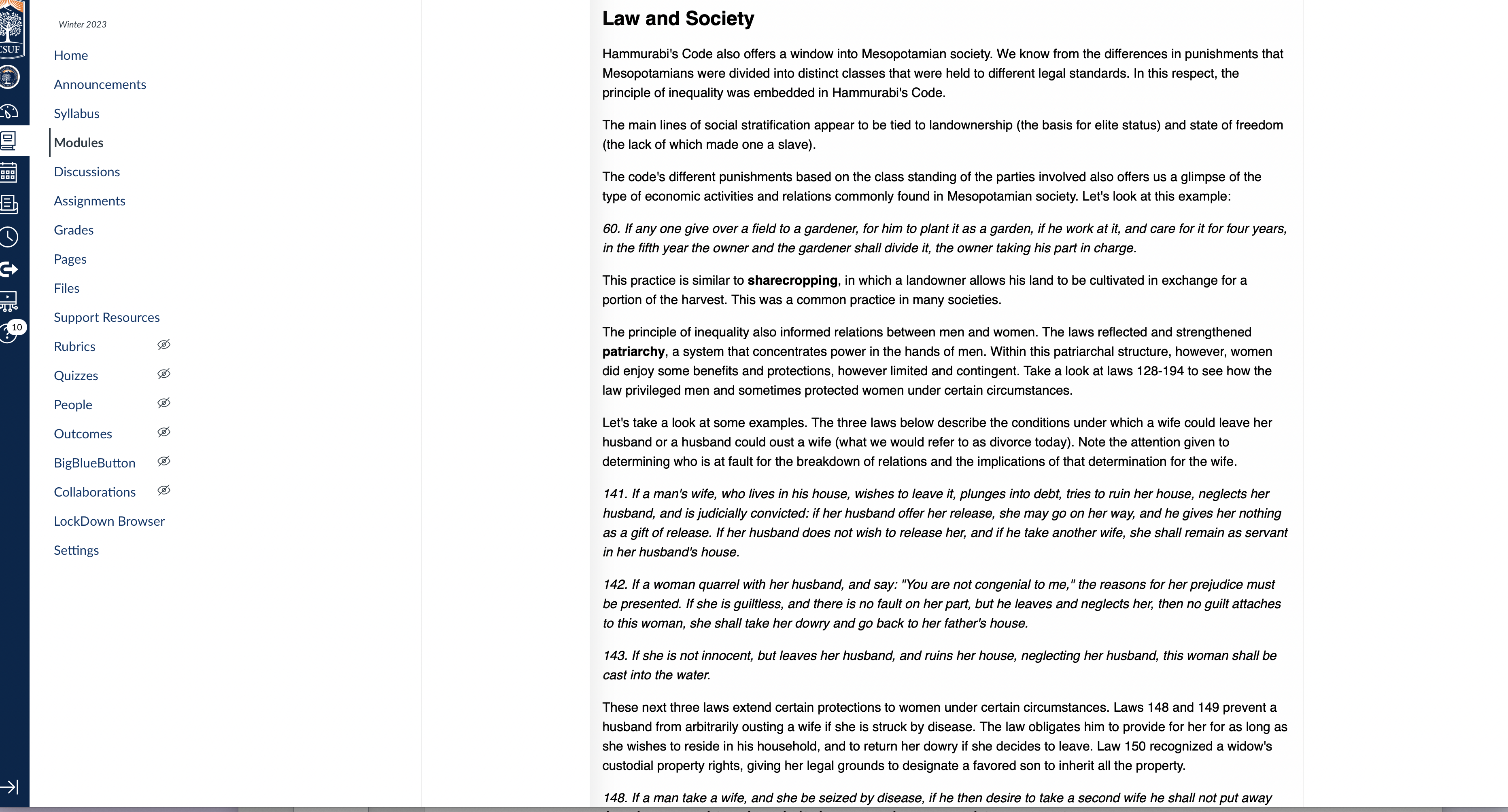 Brief Description: Utilized a combination of unlimited user access library books and OER including: World History: Cultures, States, and Societies to 1500; Western Civilization: A Concise History Volume 1 (8000 BCE - 1000 CE); Boundless World History
