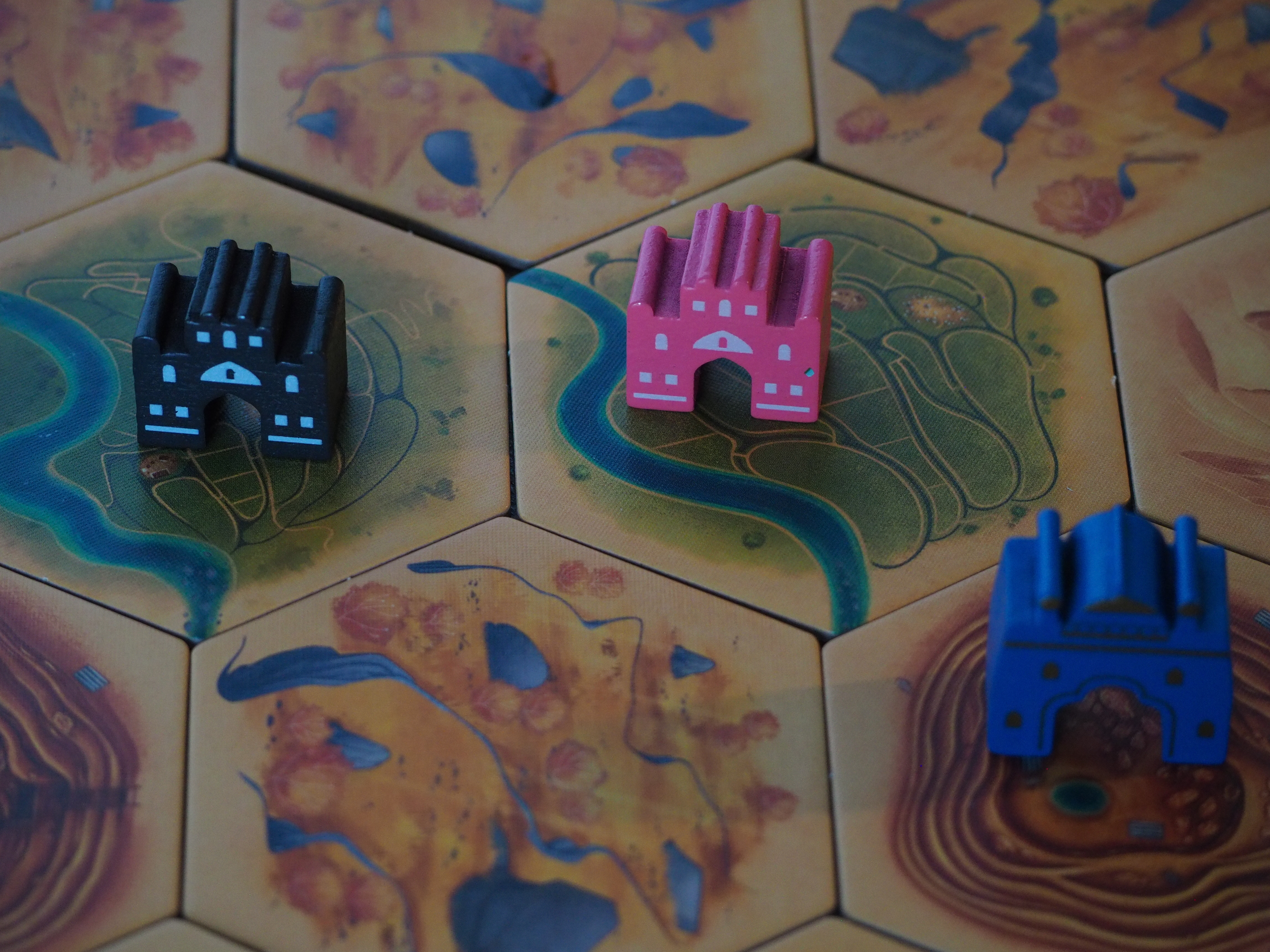 The factions are also worth highlighting as they are not only interesting, being that they are little studied in Western political science, but also have diverse goals. Of the four always in-play factions, it is only the Warlord which needs to engage in destructive play to accumulate victory points. The Murshid wins by spreading influence across the map, the Sultan by building cities, while the Caliph wins by controlling cities. These disparate victory conditions often lend themselves to more cooperative than zero-sum styles of play, with the rules keen to specify ways that players can cooperate during the game. For example, as Sultan you need to build, but not necessarily control settlements to win, while the Caliph wins by controlling cities, cities it cannot easily build. This is a refreshing and nuanced game design, which rewards cooperation between players rather than more realist approaches to achieving victory goals.