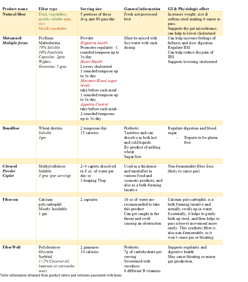 Table 5.1 Fiber Supplements