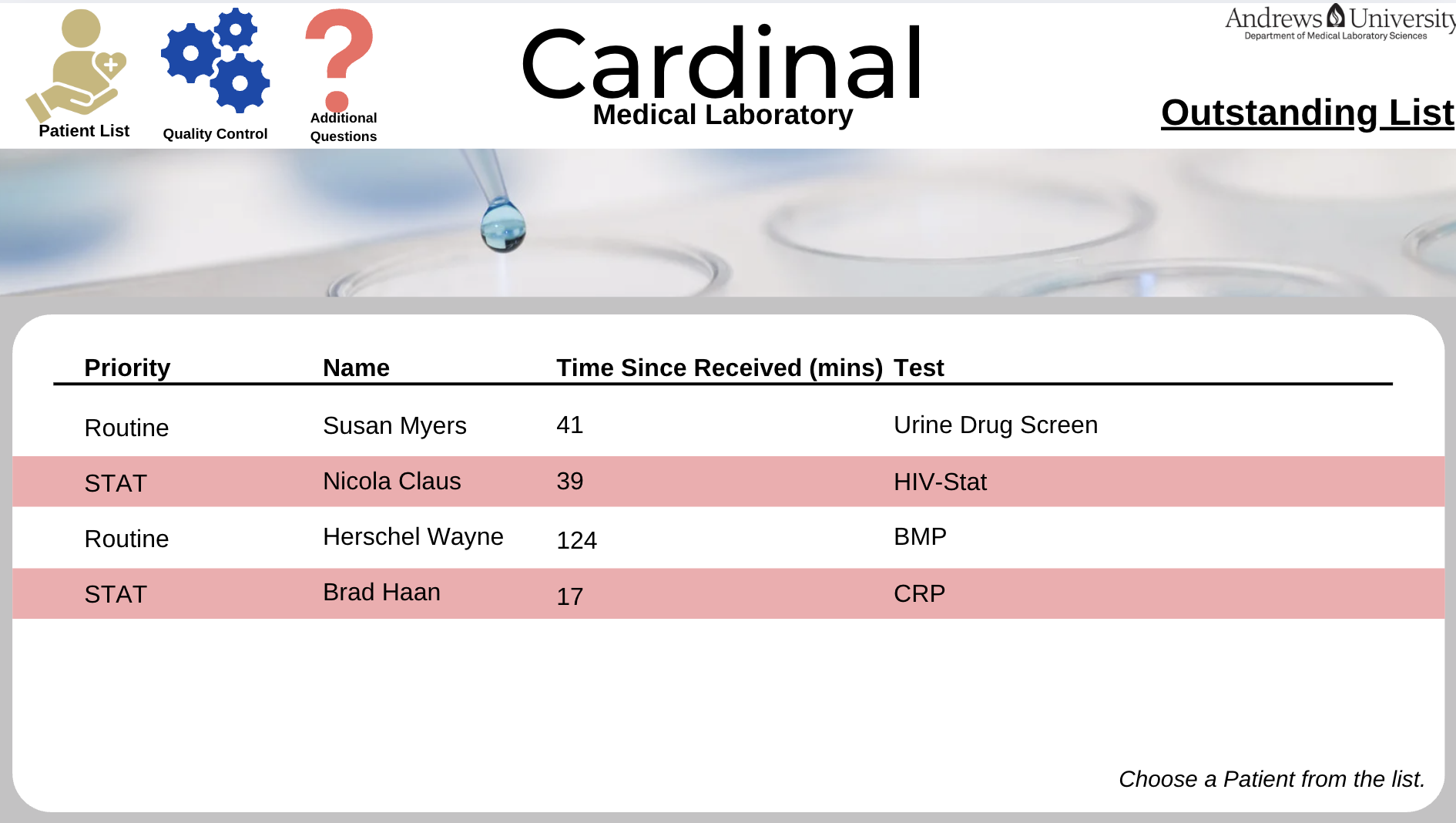About this tool: Cardinal Laboratories is a PDF-based laboratory information system (LIS) simulator designed to enhance clinical decision-making and laboratory education. This interactive teaching tool presents realistic patient cases and corresponding lab results to mimic the workflow and data interpretation challenges commonly encountered in medical laboratories. Cardinal Laboratories aims to bridge the gap between theory and practice by providing students with an immersive, case-based experience.