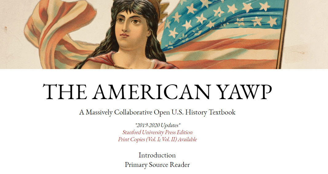 Despite this, however, I believe that the free, online book is completely appropriate for use in a freshman course at CSUSM. It is generally well written, and has a clear narrative. Because it is somewhat less complex than Foner’s work, our students have an easier time following the text; some students in the past have found Foner’s more complex arguments a bit difficult to grasp. This does not mean that the issues raised by Foner are abandoned in my course; it simply means that I take it upon myself to address such issues in our class discussions, and to encourage students to think about how those issues apply to the historical story told in The American Yawp, and to our primary source documents and other readings.