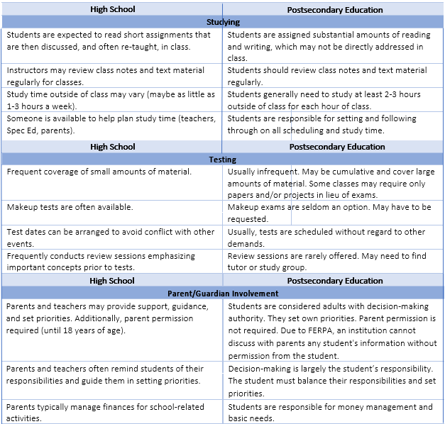 "Difference Between High School and College", from GEAR UP Washington State Activity Guide Preparing Students for the Transition to College.