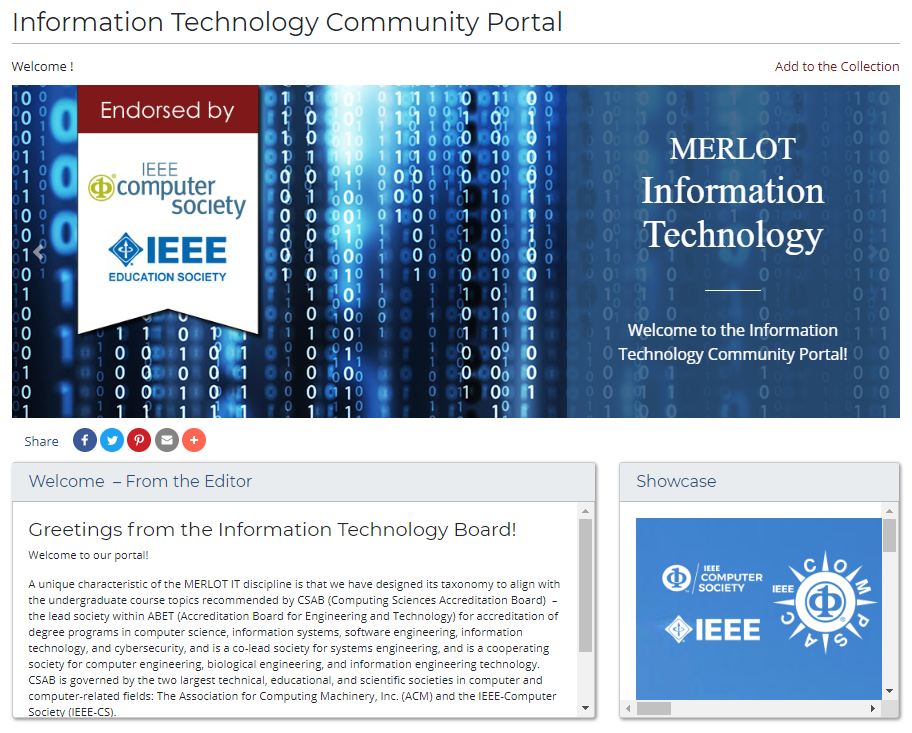 Note that the Computer Science and Information Technology learning material collections in MERLOT are catalogued with metadata that align with the principles of ABET CSAB curricular guidelines.