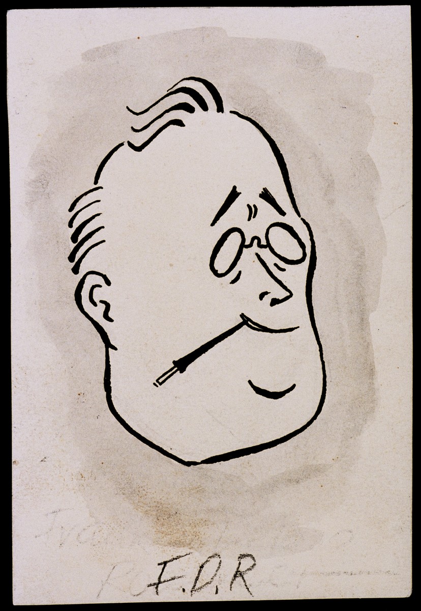 Shoah survivor, Klaus Martin Frank, who was arrested on Kristallnacht, drew this cartoon sometime during or right after the war (1939-1945). The photo is held at the United States Holocaust Memorial Museum, in the "Art of the Holocaust" section. I believe this shows how some of the victims held FDR in high regard.