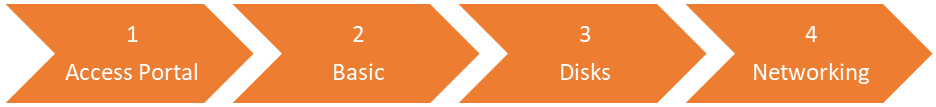 If the validation is successful and complete, the screens shown in the following diagrams will be displayed. These screens simply summarize the selections that were made in the previous stages of creating the VM. After reviewing the selections, if needed, one or more of the selections can be changed by tracing back to the earlier stages of creating the virtual machine. The tabs labeled as Basic, Disks, etc. that appear on the top of the screen can be clicked to jump to a certain stage of the VM creation process. The following diagrams summarize all the selections made in each of the previous stages.