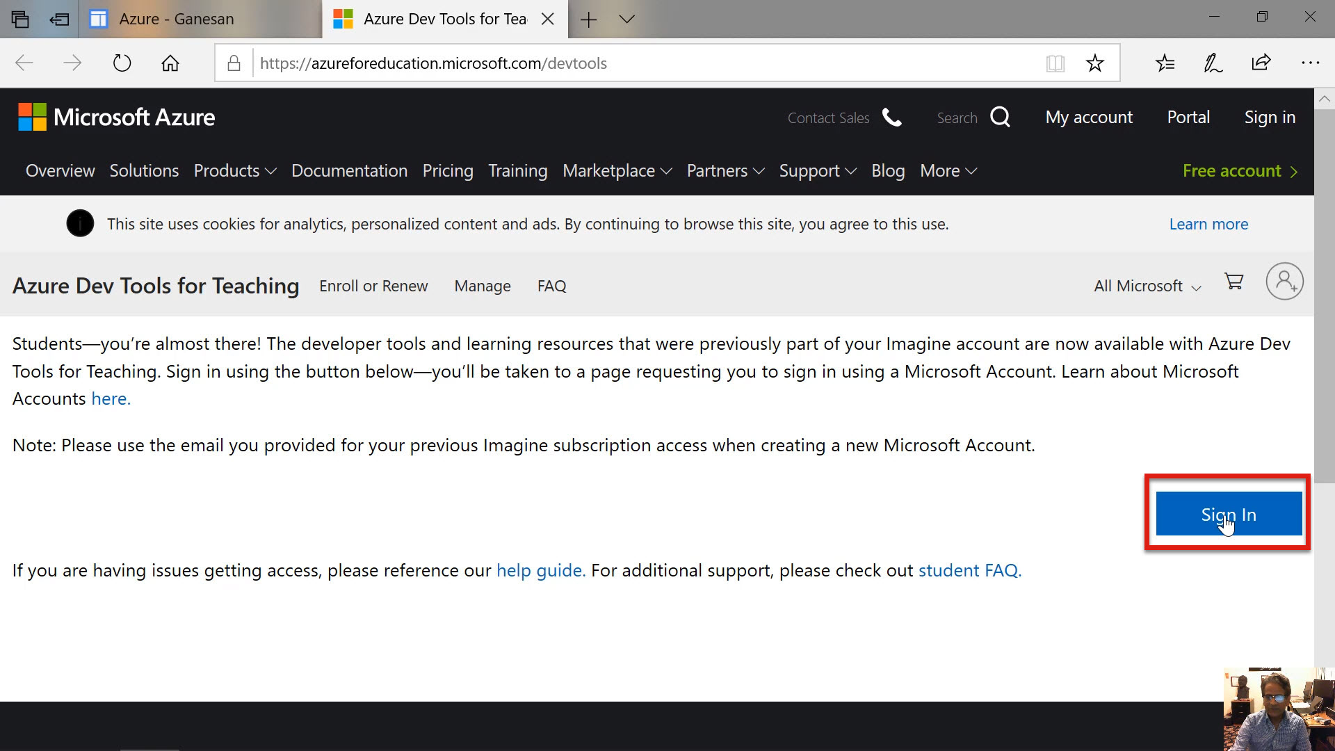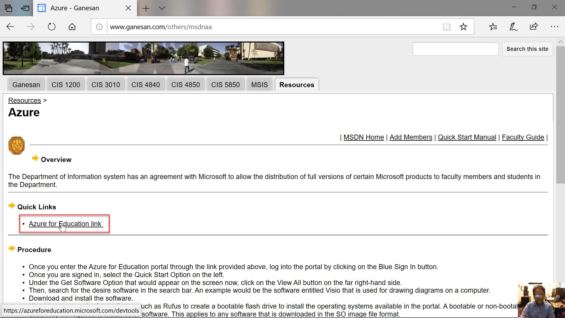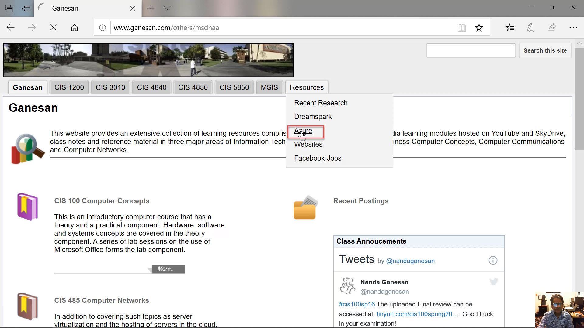 To access the portal through the instructor’s website, use the following web address: http://www.ganesan.com. Select the tab entitled Resources and then select the option entitled Azure under this tab as shown in the following diagrams.