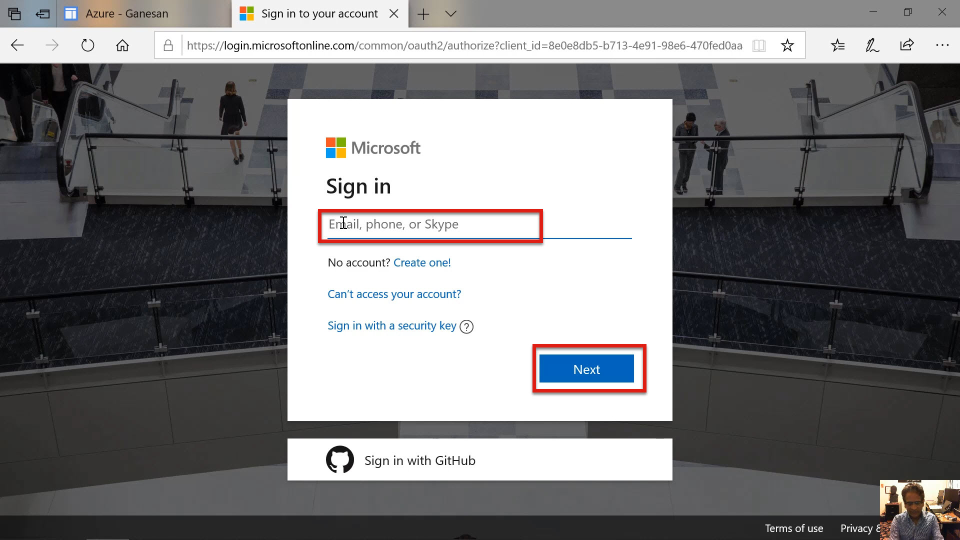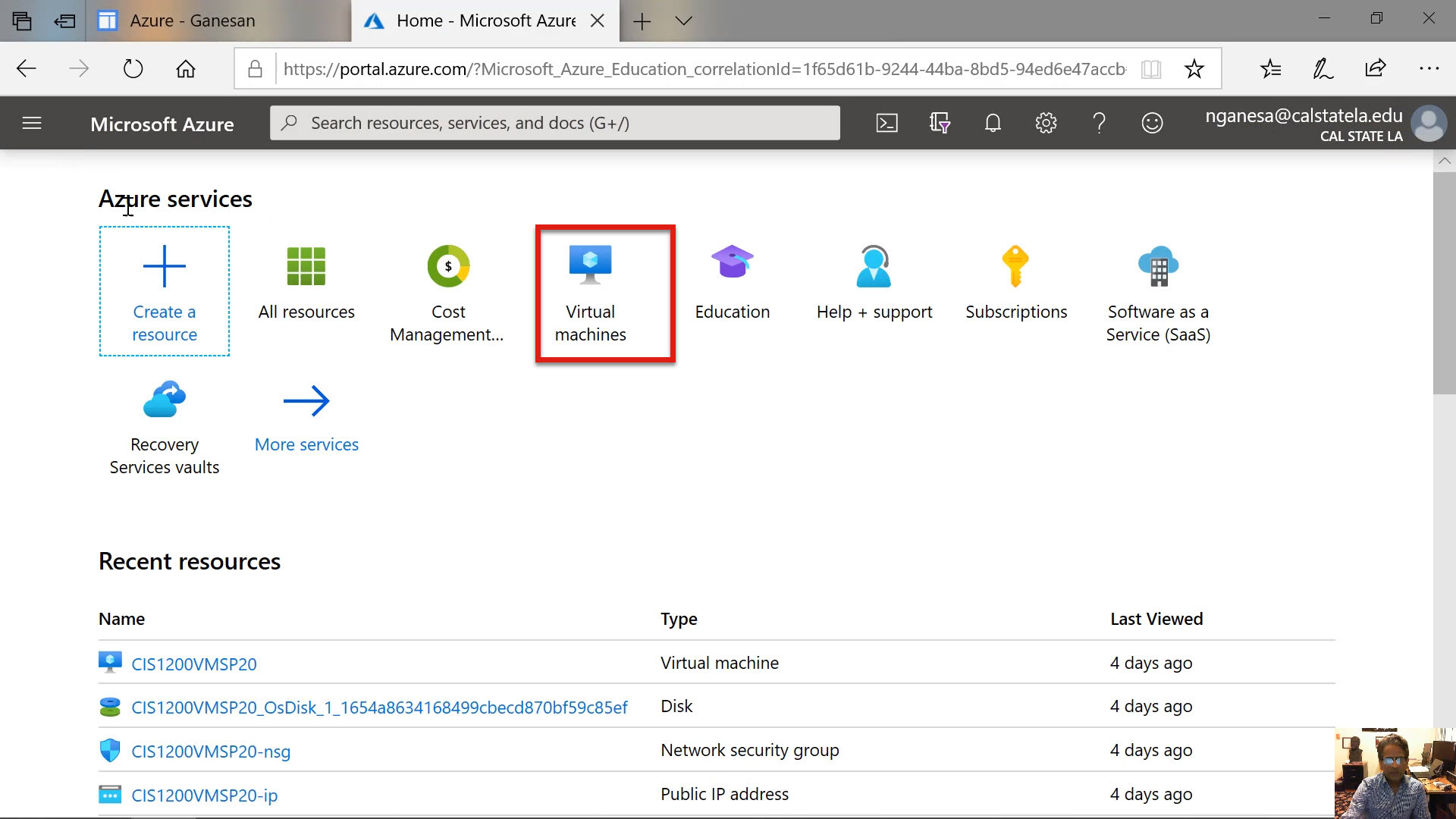 There are two different ways to access the Azure portal. One is to enter the portal address directly in the browser. The other is to access the portal via the instructor’s website. In order to access the portal directly, the following address should be entered in the browser: http://portal.azure.com.