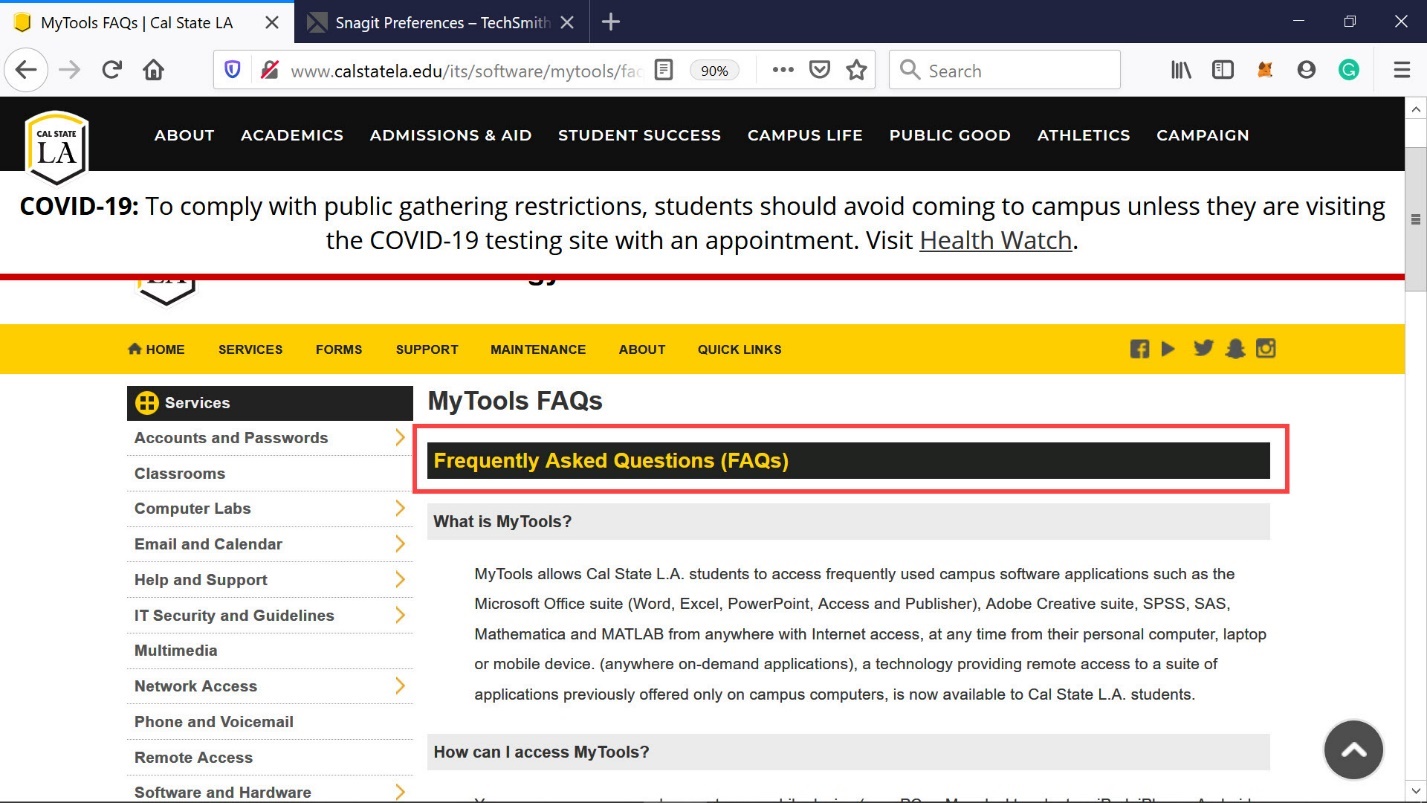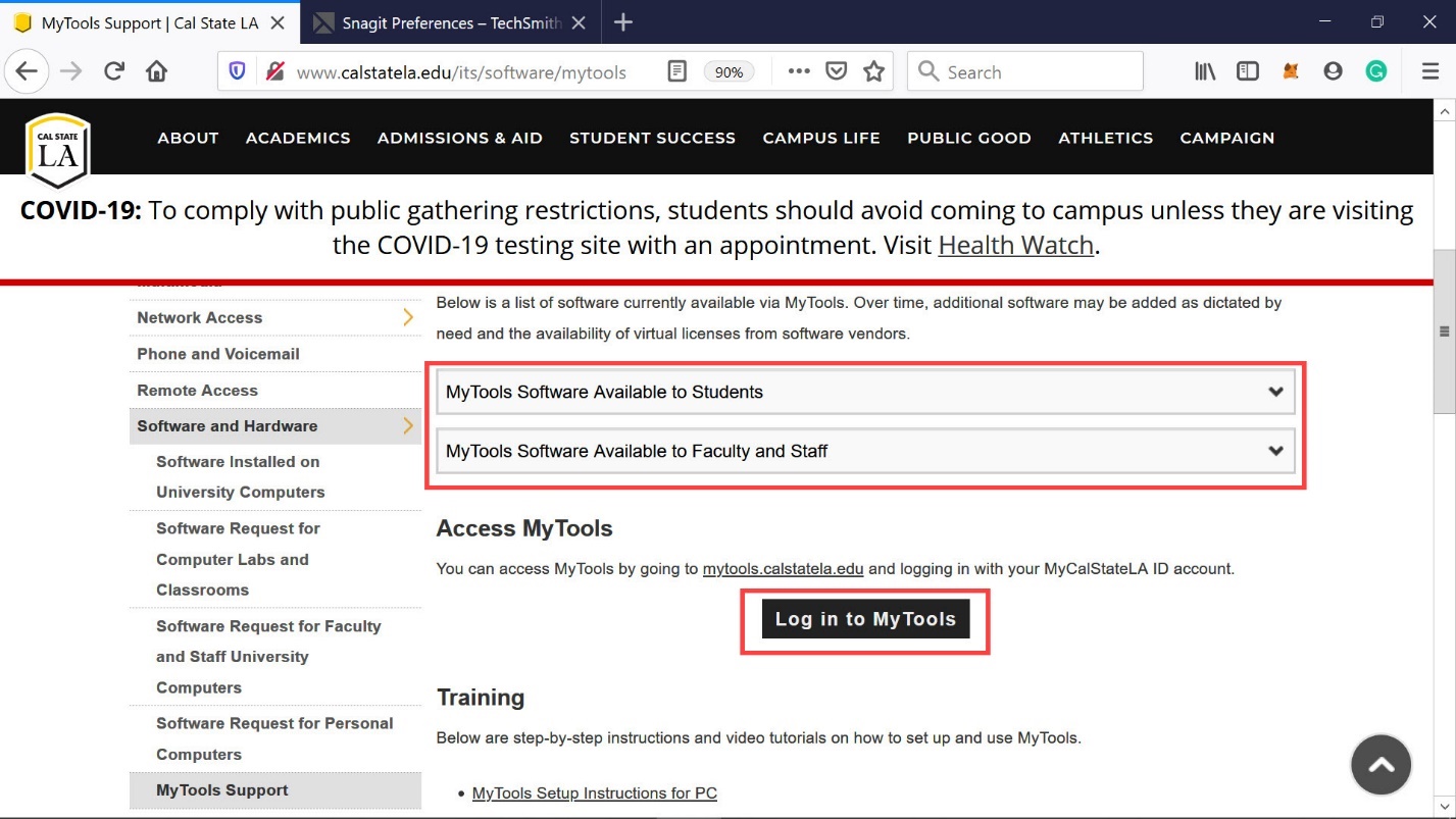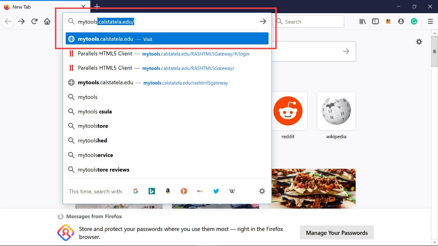 Reviewing some of the training material mentioned in the previous step would provide a better understanding of downloading and installing the Parallels client. In order to download the client, the “mytools” webpage must be accessed by typing the web address, mytools.calstatela.edu, on the browser as shown in the next diagram.