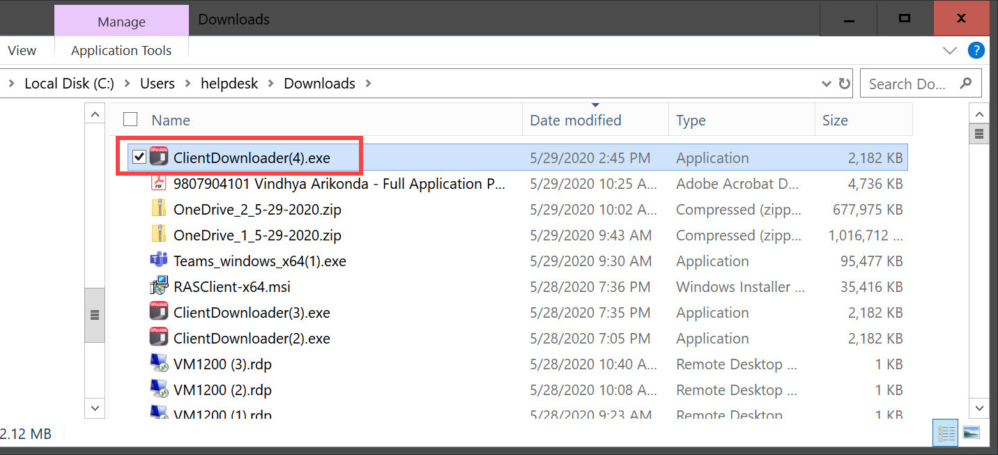 When the downloading of the app is complete, open the folder that contains the app. Click on the highlighted executable file listed in the Downloads folder as shown in the next diagram.