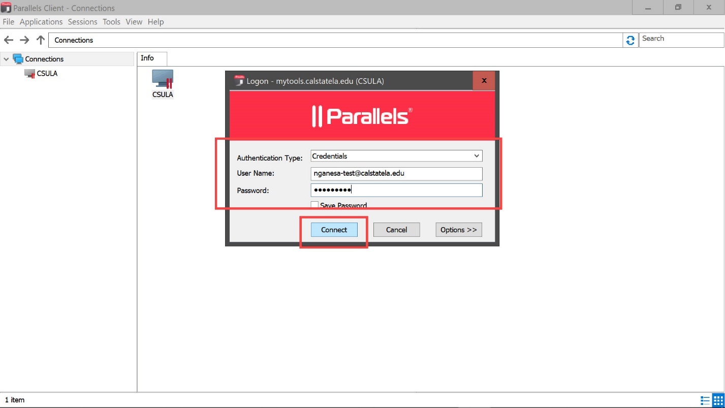 Step 3: Connecting to the Parallels Application Server and Launching Microsoft Access