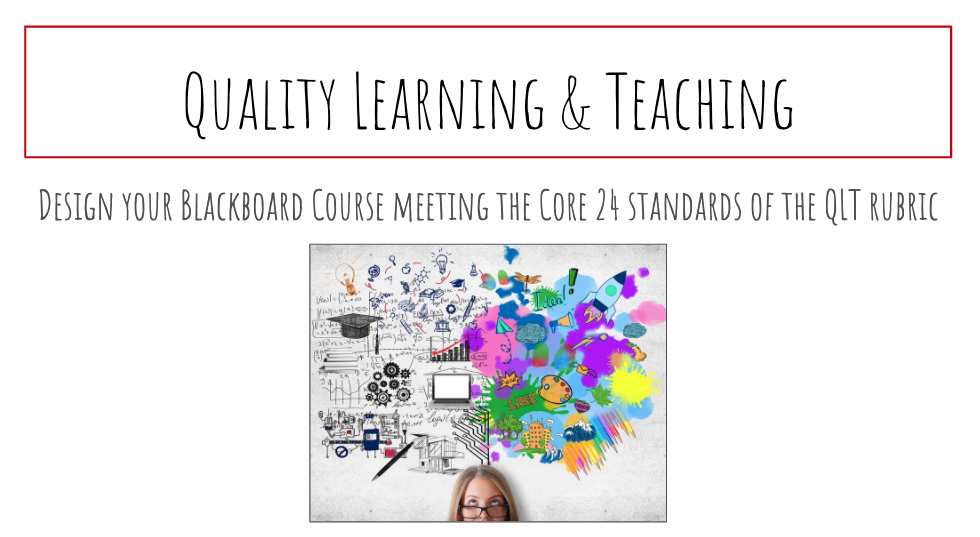 The QLT instrument was utilized as a key framework for the Go Virtual Summer Institute offered by the Technology and Learning Program and Faculty Development. Below is a sample workshop presentation that showcases how the basic Blackboard shell is designed with the Core 24 standards in mind.