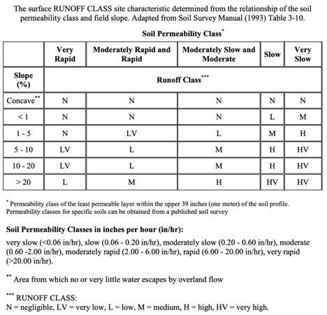 - Runoff class: Go to soil map -> click on the soil series of interest. The runoff class is listed in the soil description that pops up. Runoff class is determined based on soil permeability and slope. High runoff could pause several environmental issues.