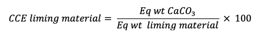 The CCE of a liming material is the acid-neutralizing capacity of the material expressed as a weight percentage of CaCO3