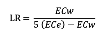 LR = minimum leaching requirement needed to control salts within the tolerance ECe of the crop with ordinary surface methods of irrigation; ECw = salinity of the applied irrigation water in dS/m; ECe = average soil salinity tolerated by the crop as measured on a soil saturation extract (dS/m). It is recommended that the ECe value that can be expected to result in at least a 90 percent or greater yield be used in the calculation.