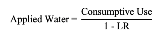 The number obtained for the LR from the above equation is used to obtain an estimate of the amount of water required (total water applied to crop) on a seasonal basis for salinity control, using the following equation: