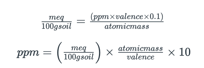 Shortcut equations to convert between meq/100 g soil and ppm