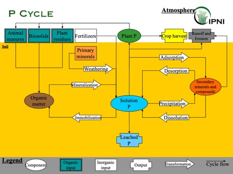 Where is P when it is not in soil solution? To answer this question, we have to take a closer look at the P cycle. When P fertilizer is applied to the soil, orthophosphate is readily adsorbed onto colloids, precipitated as secondary minerals, or immobilized by microorganisms. P can also be lost from the soil, mostly through runoff, but P leaching can be important under some conditions.
