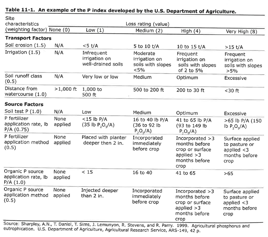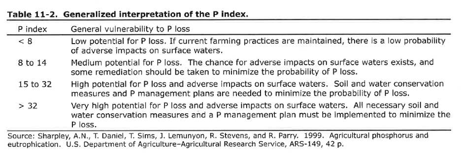 Remember we discussed the P index in lecture. The P index is a tool to determine the risk of P pollution from agricultural fields. Let's apply the P index to the case study of the lemon orchard.