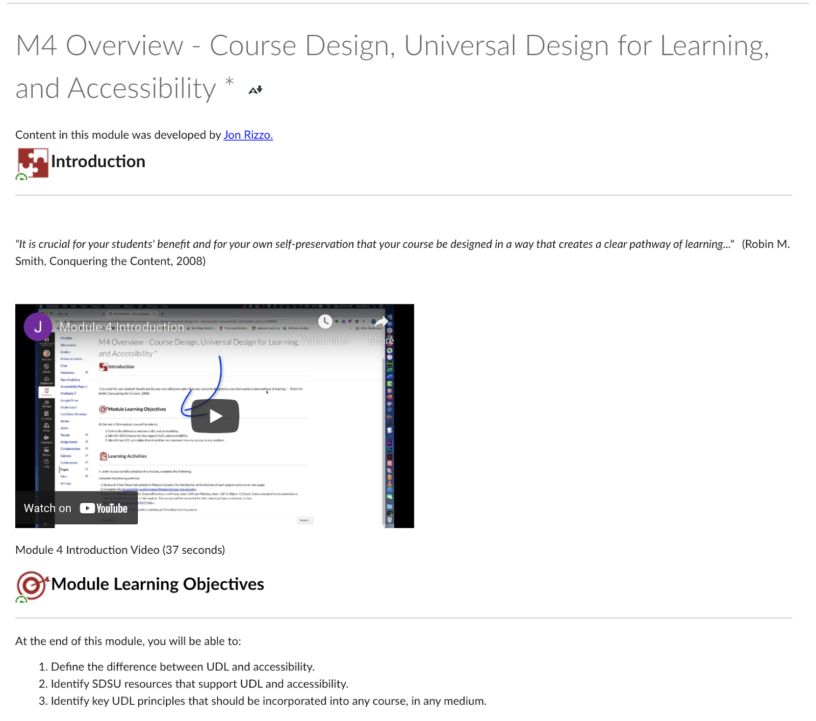 Faculty training in Flex CDI included a required module entitled “Universal Design for Learning and Accessibility” designed by SDSU’s Instructional Materials Design Specialist, Jon Rizzo