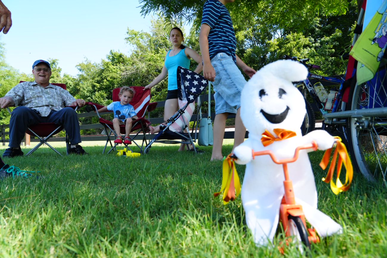 The Book Bike Mascot. Sings "I want to ride my bicycle..."