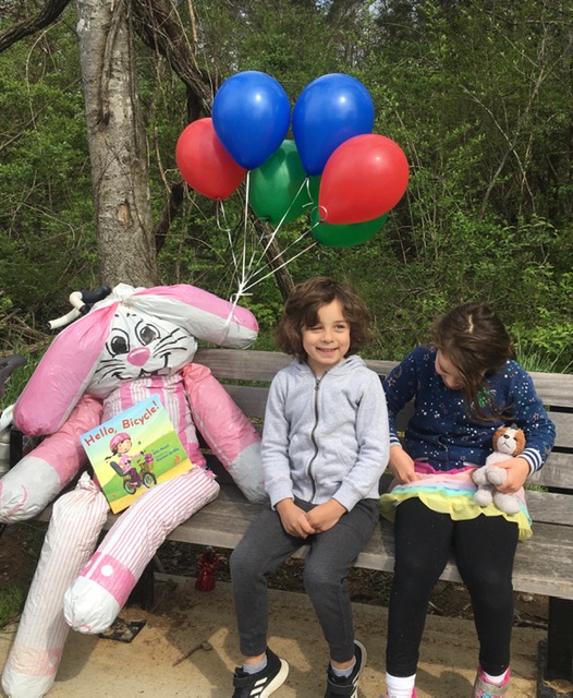 Easter Bunny came in April. Reading Hello Bicycle