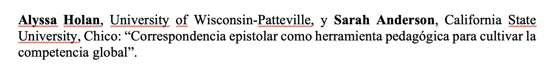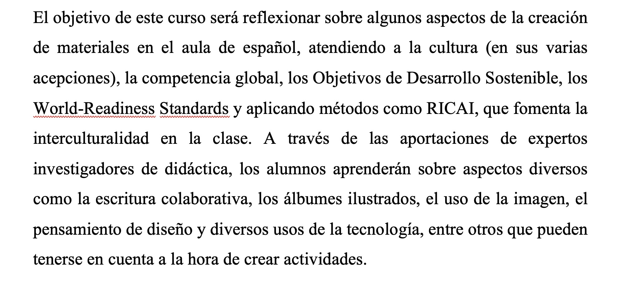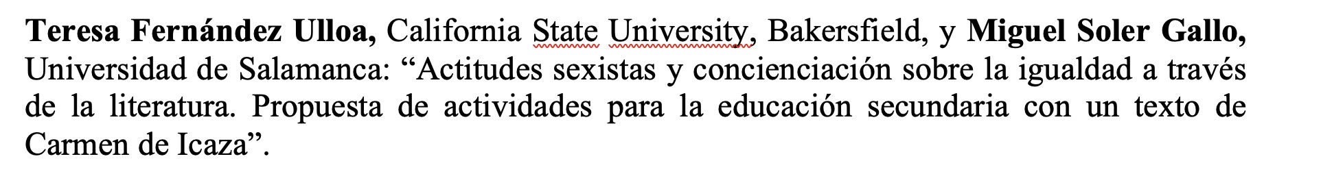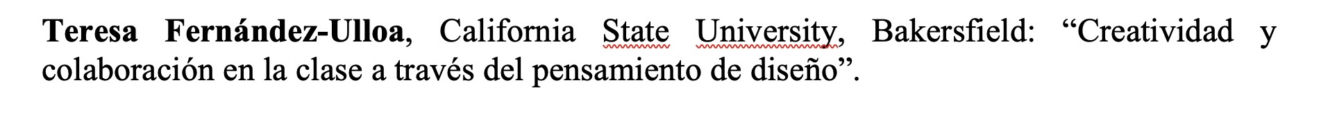 La mayoría de las presentaciones en vídeo aquí incluidas corresponden a los capítulos del libro: T. Fernández-Ulloa y M. Soler Gallo (Eds.) (2023). Experiencias prácticas en didáctica del español como primera y segunda lengua. Competencia global, Objetivos de Desarrollo Sostenible y World-Readiness Standards. Berlín: PETER LANG. ISBN: 978-3-631-90549-4.