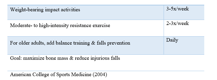 Table 4. Exercise to Help Preserve Bone Health in Adults
